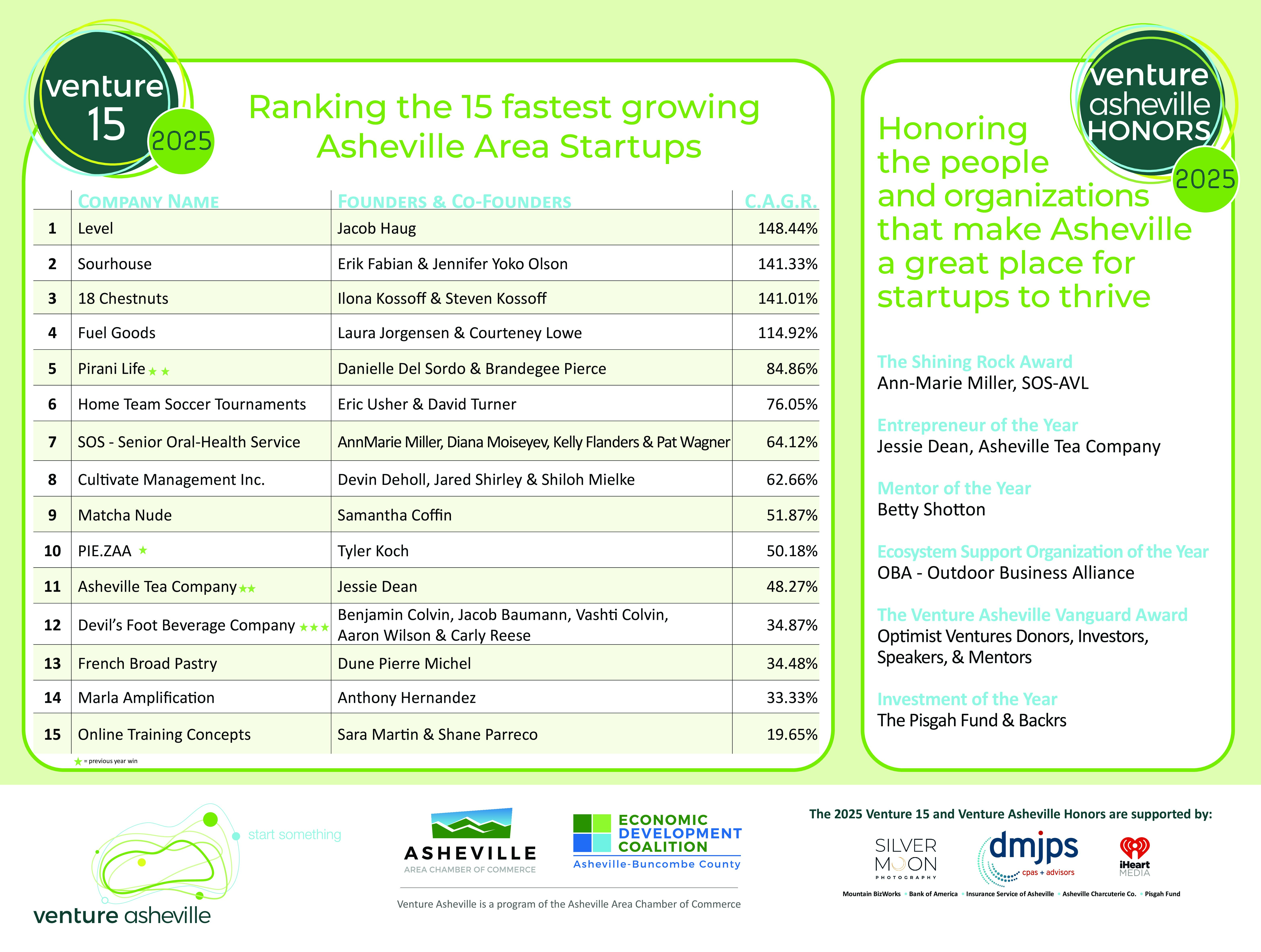 The 2025 Venture 15 and Venture Asheville Honors was one to remember. Below we’ve pasted an excerpt of our Director of Venture Asheville, Jeffrey Kaplan’s, opening comments. For a brief recap, we’d like to share HatchWNC’s newsletter as well as a Reel from our colleagues at NEXT GEN.